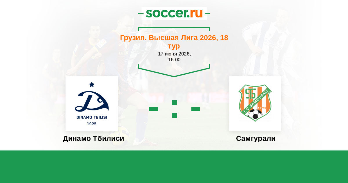 Грузия. Высшая лига 18.04.2022 Динамо Тбилиси Логотип футбольный клуб Динамо Тбилиси 0:0 Логотип футбольный клуб Самгурали (Цхалтубо) Самгурали