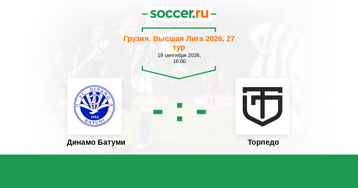 Грузия. Высшая лига 05.03.2019 Динамо Батуми Логотип футбольный клуб Динамо Батуми 0:2 Логотип футбольный клуб Торпедо (Кутаиси) Торпедо