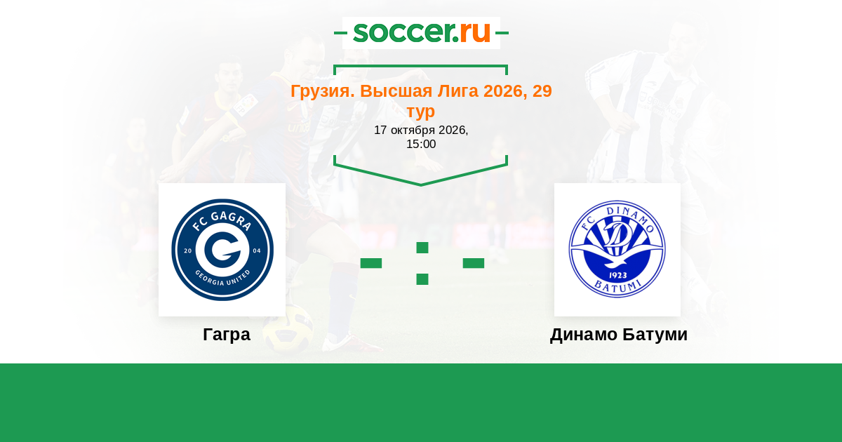 Грузия. Высшая лига 26.10.2025 Гагра Логотип футбольный клуб Гагра (Тбилиси) 4:1 Логотип футбольный клуб Динамо Батуми Динамо Батуми