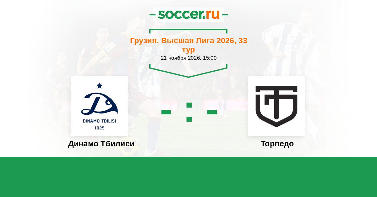 Грузия. Высшая лига 05.03.2021 Торпедо Логотип футбольный клуб Торпедо (Кутаиси) 0:2 Логотип футбольный клуб Динамо Тбилиси Динамо Тбилиси