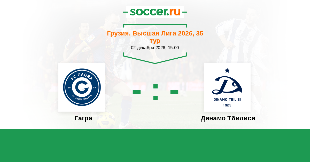 Грузия. Высшая лига 05.04.2025 Гагра Логотип футбольный клуб Гагра (Тбилиси) 0:4 Логотип футбольный клуб Динамо Тбилиси Динамо Тбилиси