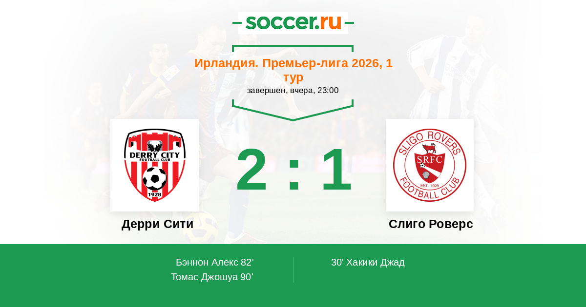 Протокол матча Дерри Сити против Слиго Роверс