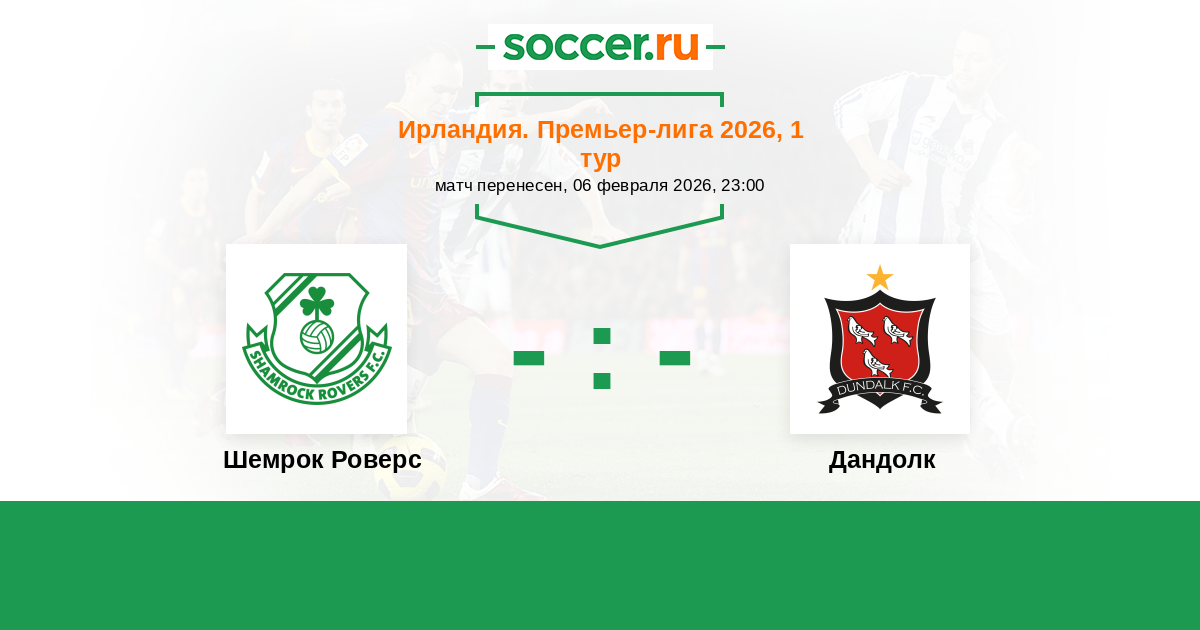 Ирландия. Премьер-лига 23.02.2018 Шемрок Роверс Логотип футбольный клуб Шемрок Роверс (Дублин) 0:0 Логотип футбольный клуб Дандолк Дандолк