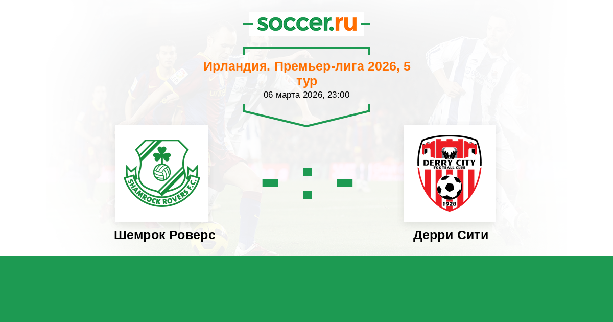 Ирландия. Премьер-лига 25.02.2022 Дерри Сити Логотип футбольный клуб Дерри Сити 2:1 Логотип футбольный клуб Шемрок Роверс (Дублин) Шемрок Роверс