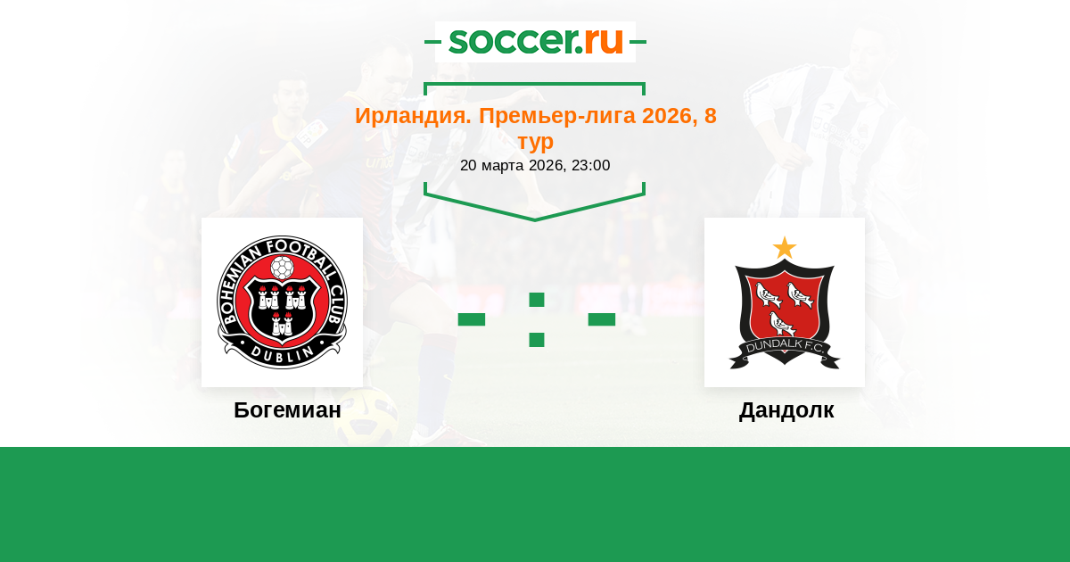Ирландия. Премьер-лига 15.04.2019 Дандолк Логотип футбольный клуб Дандолк 1:0 Логотип футбольный клуб Богемиан (Дублин) Богемиан
