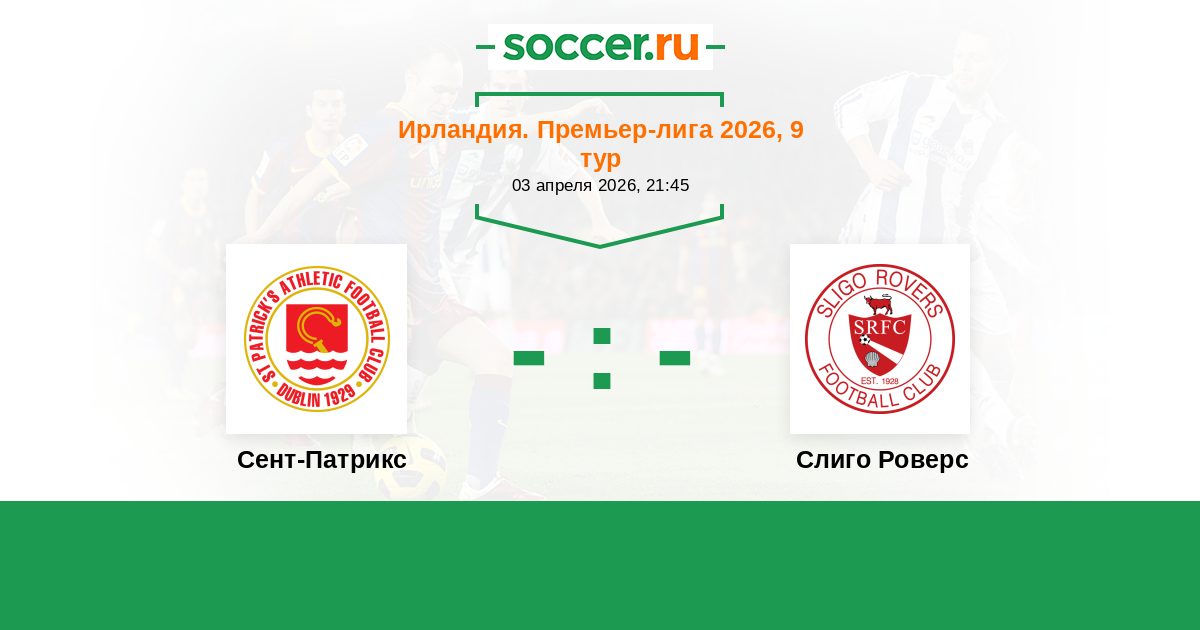 Ирландия. Премьер-лига 01.04.2024 Сент-Патрикс Логотип футбольный клуб Сент-Патрикс (Дублин) 3:0 Логотип футбольный клуб Слиго Роверс Слиго Роверс