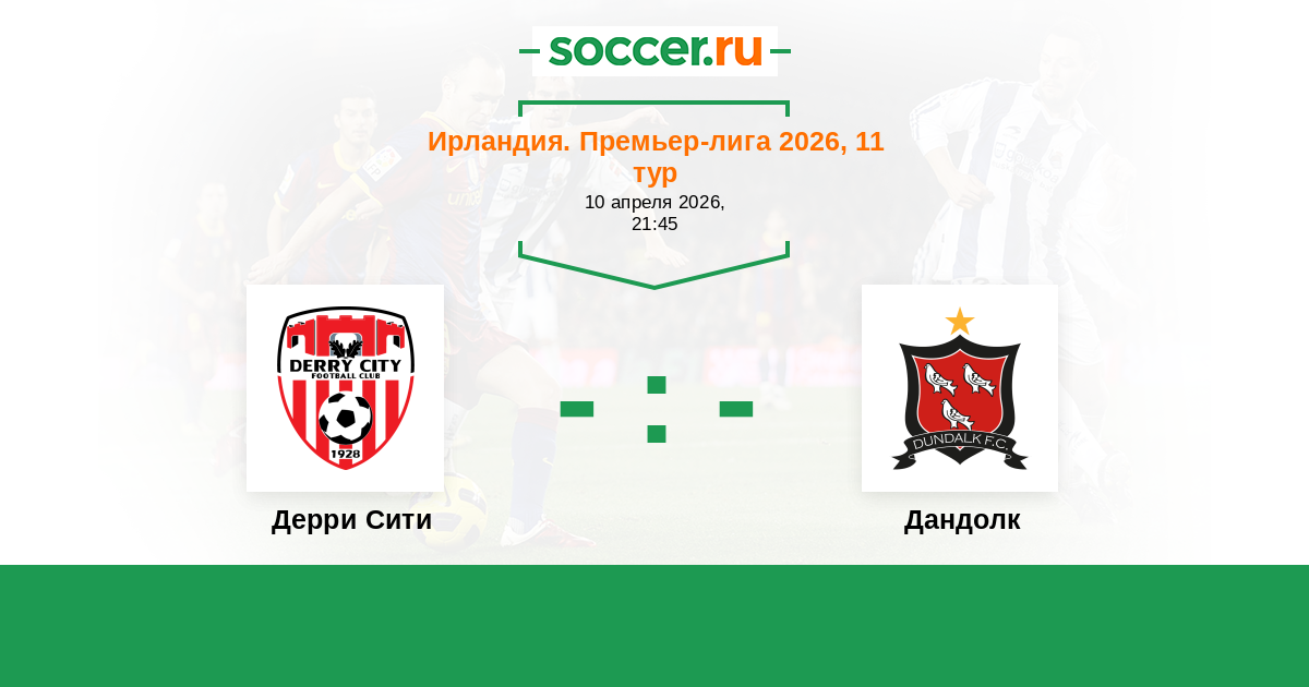 Ирландия. Премьер-лига 20.04.2021 Дерри Сити Логотип футбольный клуб Дерри Сити 1:1 Логотип футбольный клуб Дандолк Дандолк