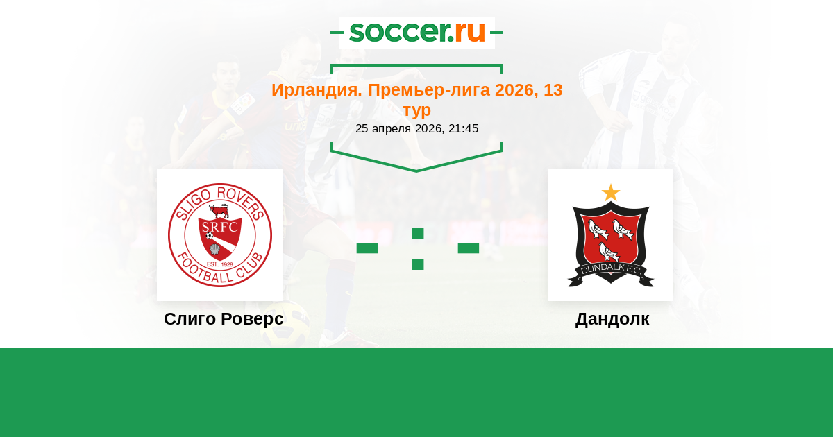 Ирландия. Премьер-лига 19.04.2024 Слиго Роверс Логотип футбольный клуб Слиго Роверс 1:1 Логотип футбольный клуб Дандолк Дандолк
