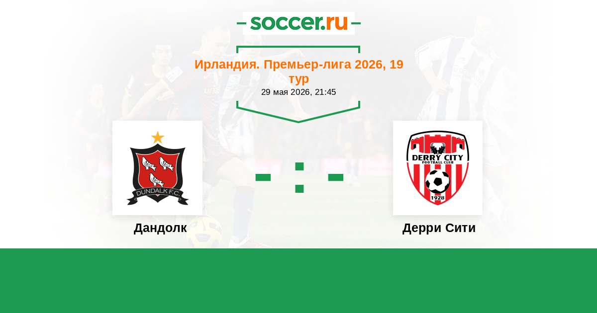 Ирландия. Премьер-лига 05.04.2024 Дерри Сити Логотип футбольный клуб Дерри Сити 4:1 Логотип футбольный клуб Дандолк Дандолк