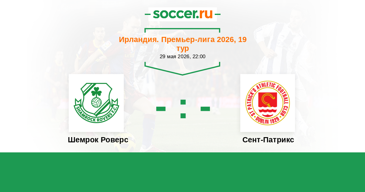 Ирландия. Премьер-лига 17.03.2023 Шемрок Роверс Логотип футбольный клуб Шемрок Роверс (Дублин) 2:2 Логотип футбольный клуб Сент-Патрикс (Дублин) Сент-Патрикс