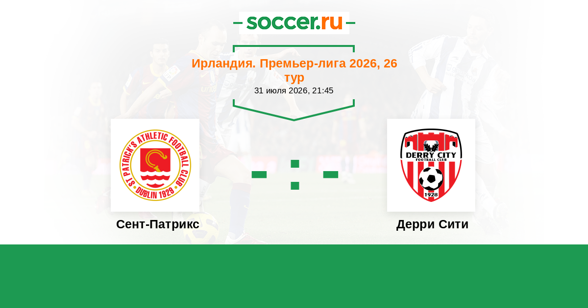 Ирландия. Премьер-лига 29.08.2025 Дерри Сити Логотип футбольный клуб Дерри Сити 2:2 Логотип футбольный клуб Сент-Патрикс (Дублин) Сент-Патрикс