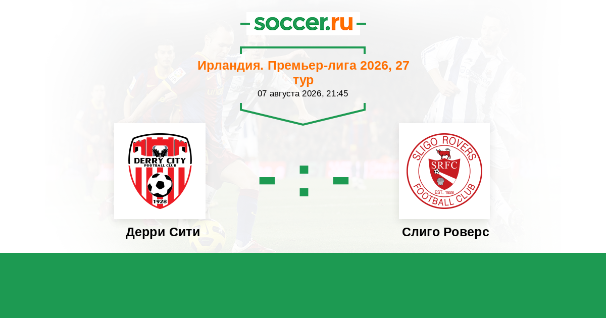 Ирландия. Премьер-лига 04.07.2024 Слиго Роверс Логотип футбольный клуб Слиго Роверс 2:1 Логотип футбольный клуб Дерри Сити Дерри Сити
