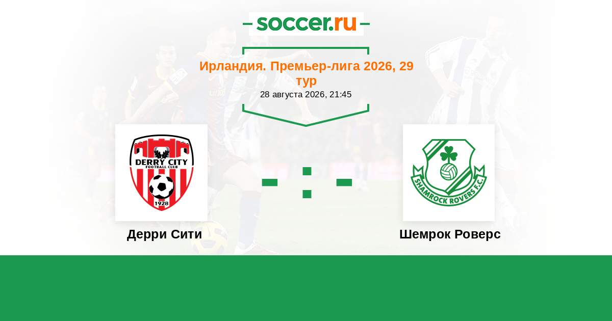 Ирландия. Премьер-лига 26.10.2025 Дерри Сити Логотип футбольный клуб Дерри Сити 2:1 Логотип футбольный клуб Шемрок Роверс (Дублин) Шемрок Роверс