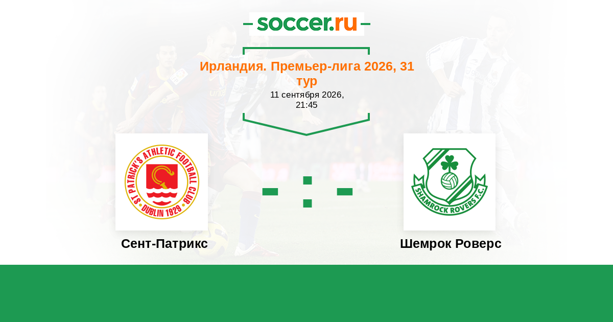 Ирландия. Премьер-лига 26.09.2014 Сент-Патрикс Логотип футбольный клуб Сент-Патрикс (Дублин) 1:1 Логотип футбольный клуб Шемрок Роверс (Дублин) Шемрок Роверс