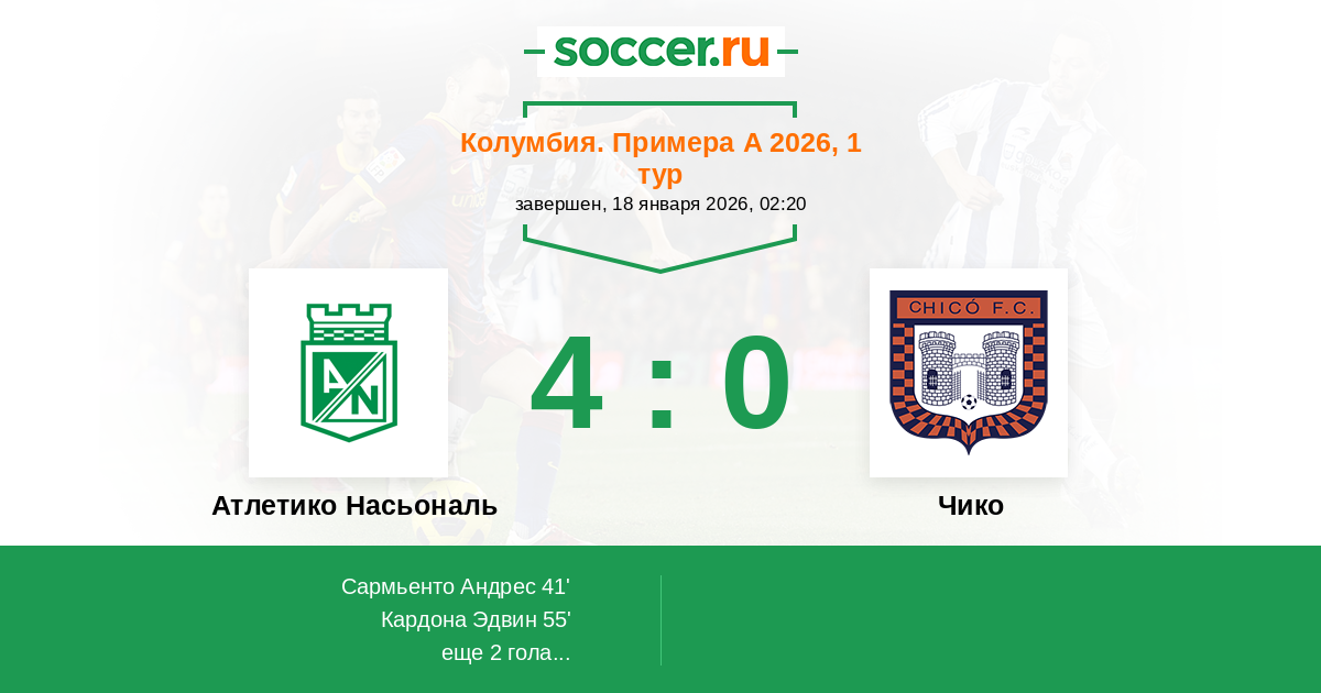Протокол матча Атлетико Насьональ против Чико