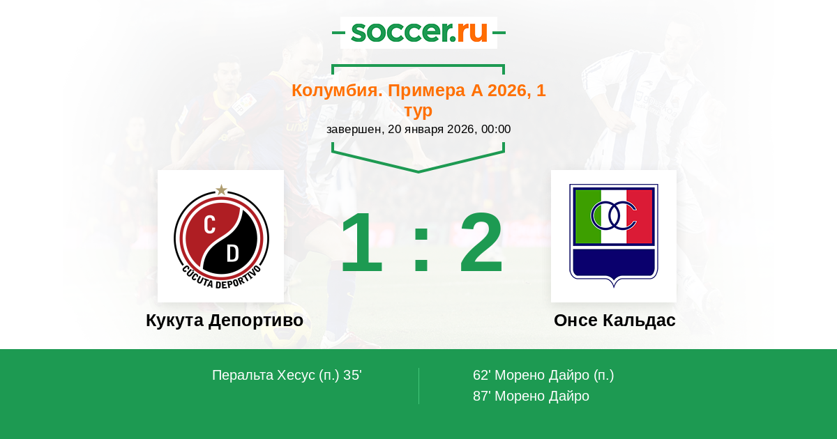 Протокол матча Кукута Депортиво против Онсе Кальдас