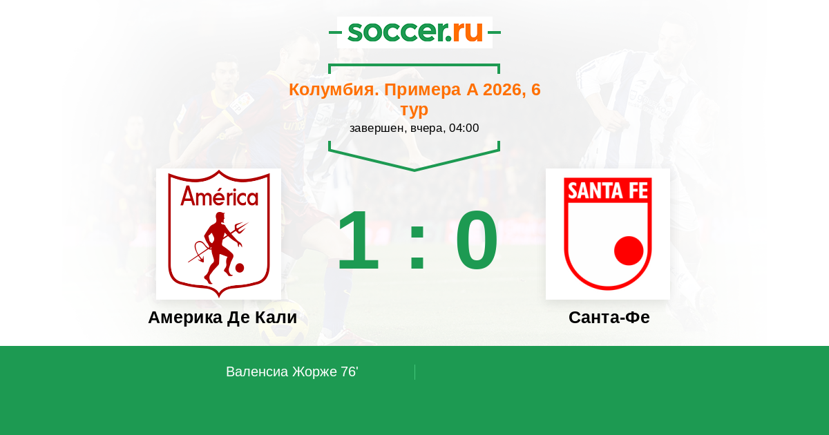 Протокол матча Америка Де Кали против Санта-Фе