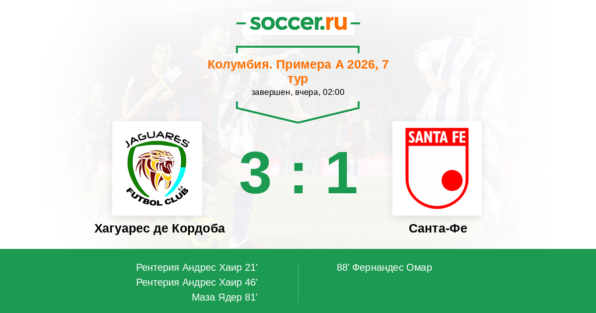Протокол матча Хагуарес де Кордоба против Санта-Фе