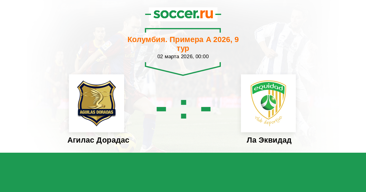 Колумбия. Примера А 24.03.2018 Агилас Дорадас Логотип футбольный клуб Агилас Дорадас (Рионегро) 2:1 Логотип футбольный клуб Ла Эквидад (Богота) Ла Эквидад