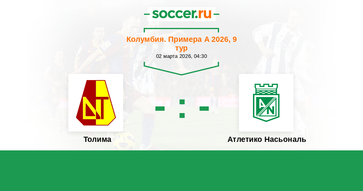 Колумбия. Примера А 20.03.2025 Атлетико Насьональ Логотип футбольный клуб Атлетико Насьональ (Медельин) 4:3 Логотип футбольный клуб Толима (Ибаге) Толима