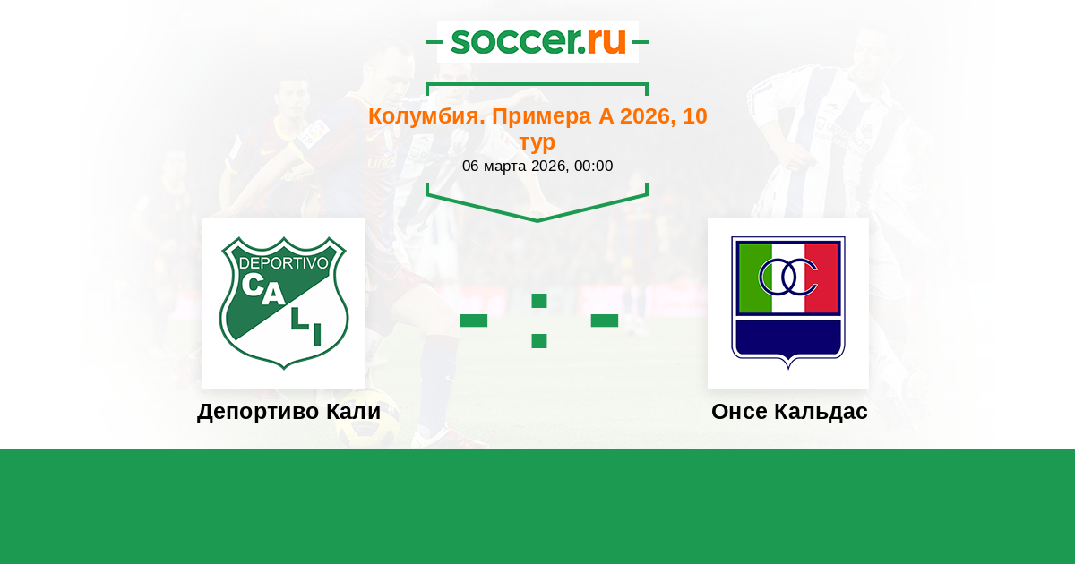 Колумбия. Примера А 07.03.2021 Онсе Кальдас Логотип футбольный клуб Онсе Кальдас (Манисалес) 0:0 Логотип футбольный клуб Депортиво Кали Депортиво Кали