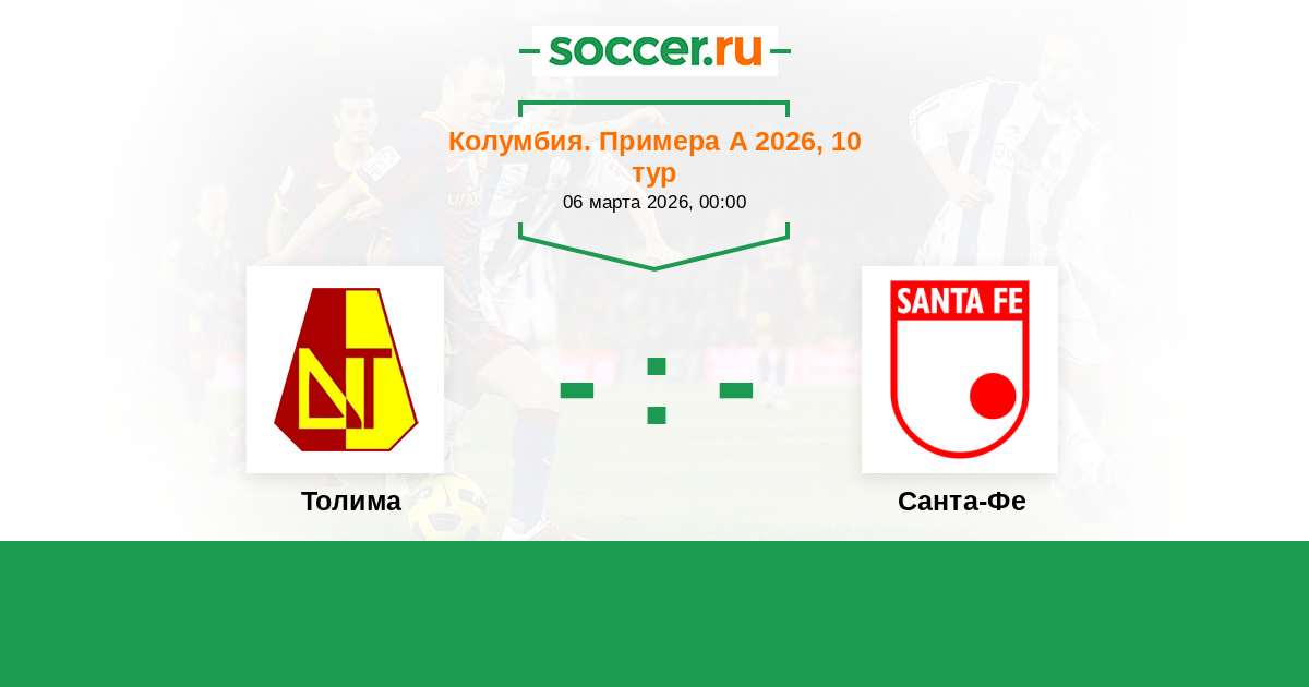 Колумбия. Примера А 16.03.2024 Санта-Фе Логотип футбольный клуб Санта-Фе (Богота) 1:1 Логотип футбольный клуб Толима (Ибаге) Толима