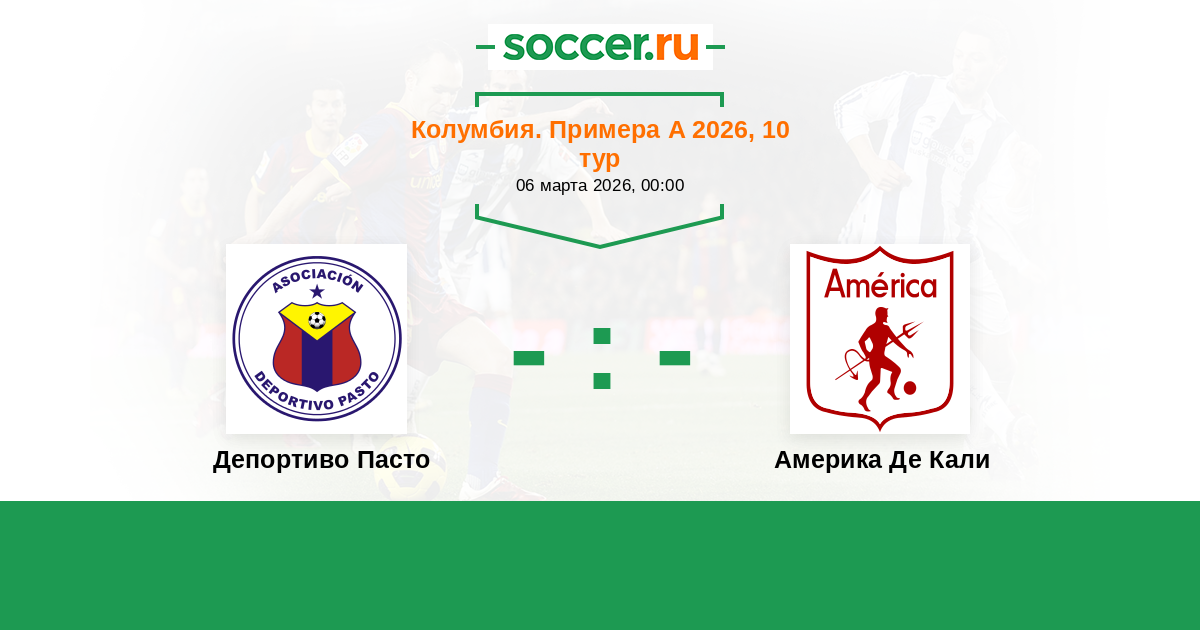 Колумбия. Примера А 01.03.2021 Депортиво Пасто Логотип футбольный клуб Депортиво Пасто 1:1 Логотип футбольный клуб Америка Де Кали Америка Де Кали