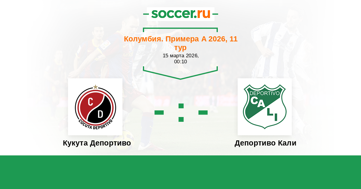 Колумбия. Примера А 24.02.2013 Кукута Депортиво Логотип футбольный клуб Кукута Депортиво 0:0 Логотип футбольный клуб Депортиво Кали Депортиво Кали
