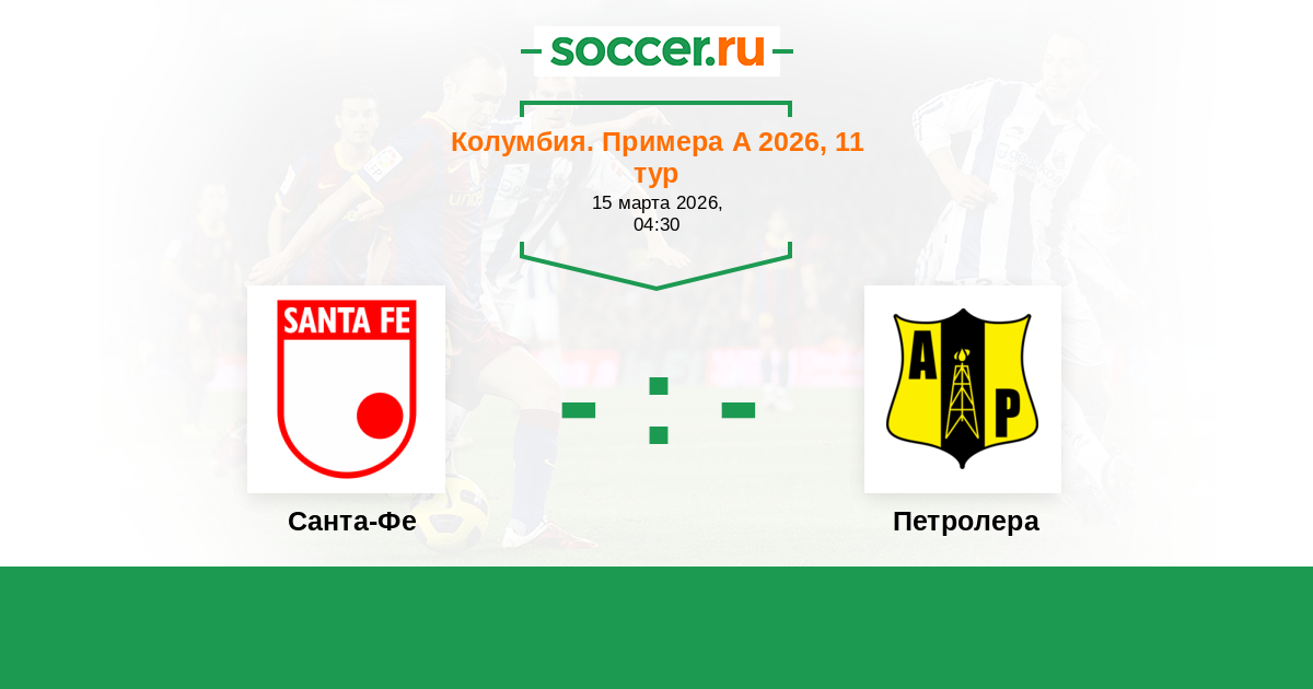 Колумбия. Примера А 04.03.2024 Петролера Логотип футбольный клуб Петролера 0:1 Логотип футбольный клуб Санта-Фе (Богота) Санта-Фе
