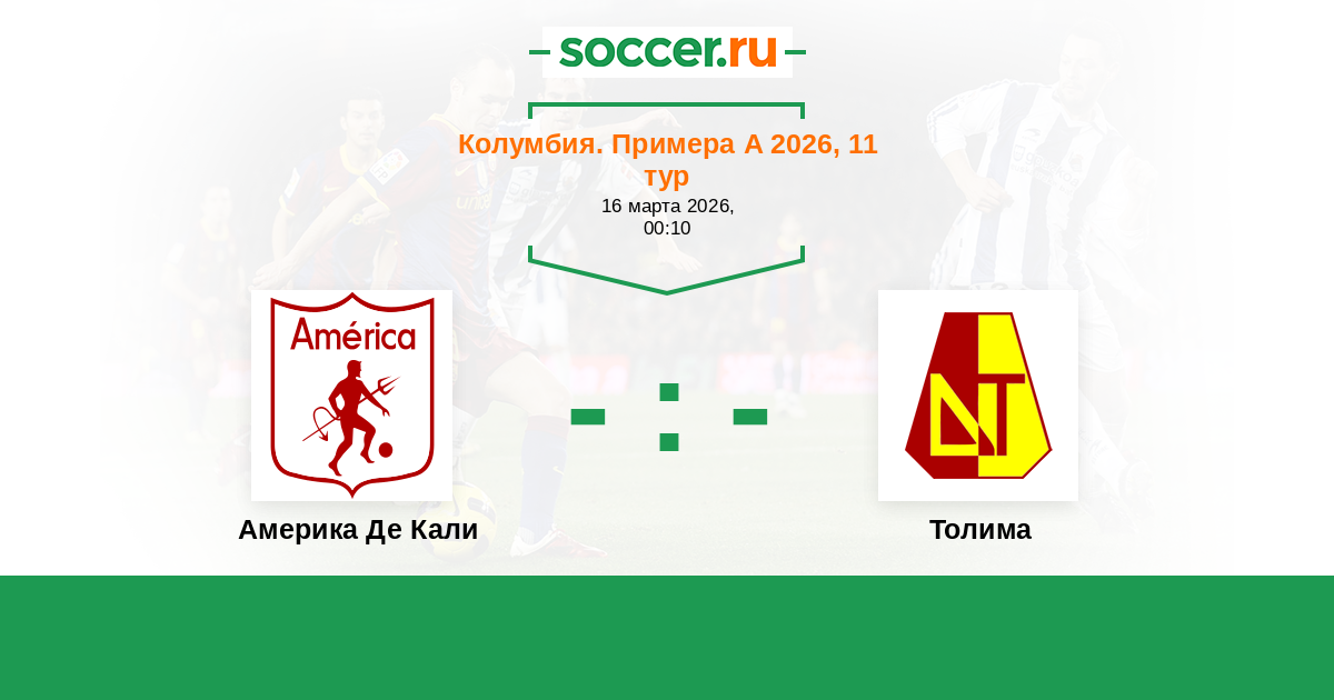 Колумбия. Примера А 28.03.2022 Толима Логотип футбольный клуб Толима (Ибаге) 1:0 Логотип футбольный клуб Америка Де Кали Америка Де Кали