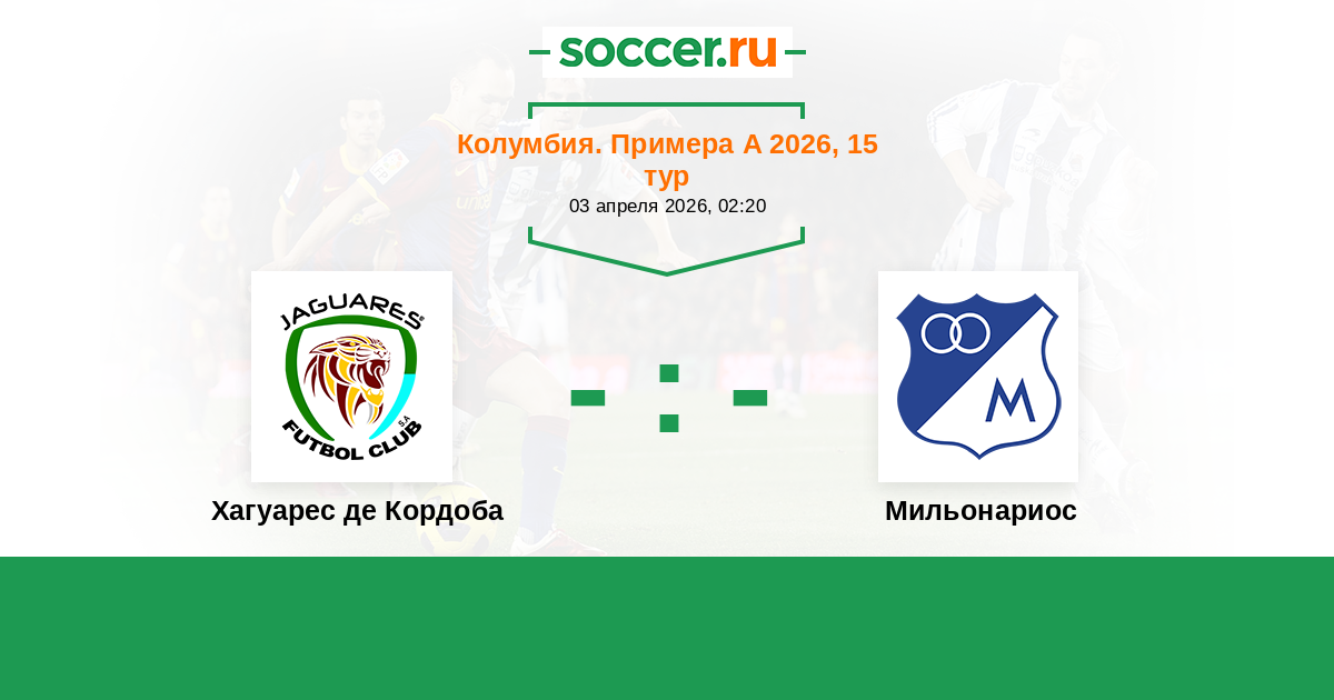 Колумбия. Примера А 11.03.2024 Хагуарес де Кордоба Логотип футбольный клуб Хагуарес де Кордоба (Монтерия) 2:1 Логотип футбольный клуб Мильонариос (Богота) Мильонариос
