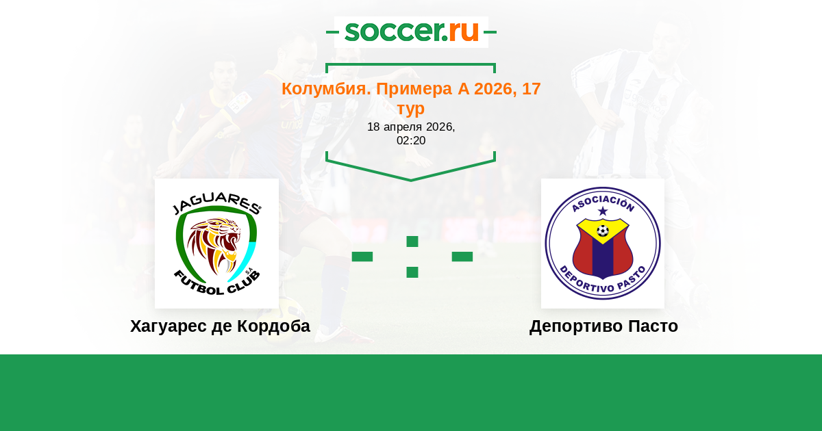 Колумбия. Примера А 18.02.2017 Депортиво Пасто Логотип футбольный клуб Депортиво Пасто 0:0 Логотип футбольный клуб Хагуарес де Кордоба (Монтерия) Хагуарес де Кордоба
