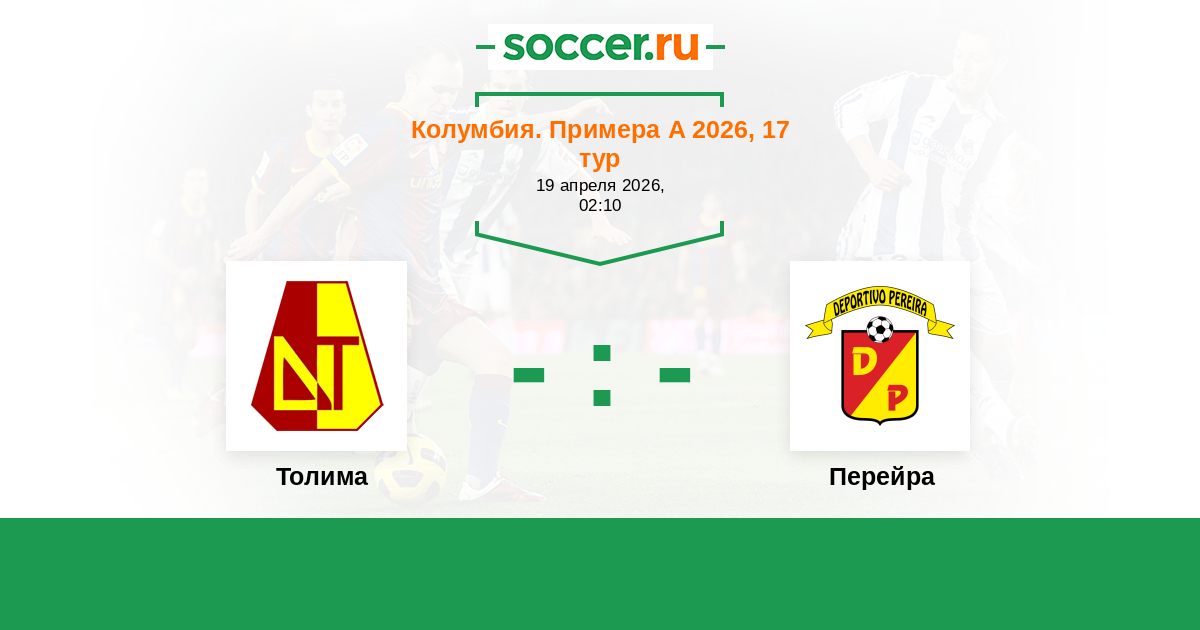 Колумбия. Примера А 26.07.2025 Толима Логотип футбольный клуб Толима (Ибаге) 1:0 Логотип футбольный клуб Перейра Перейра