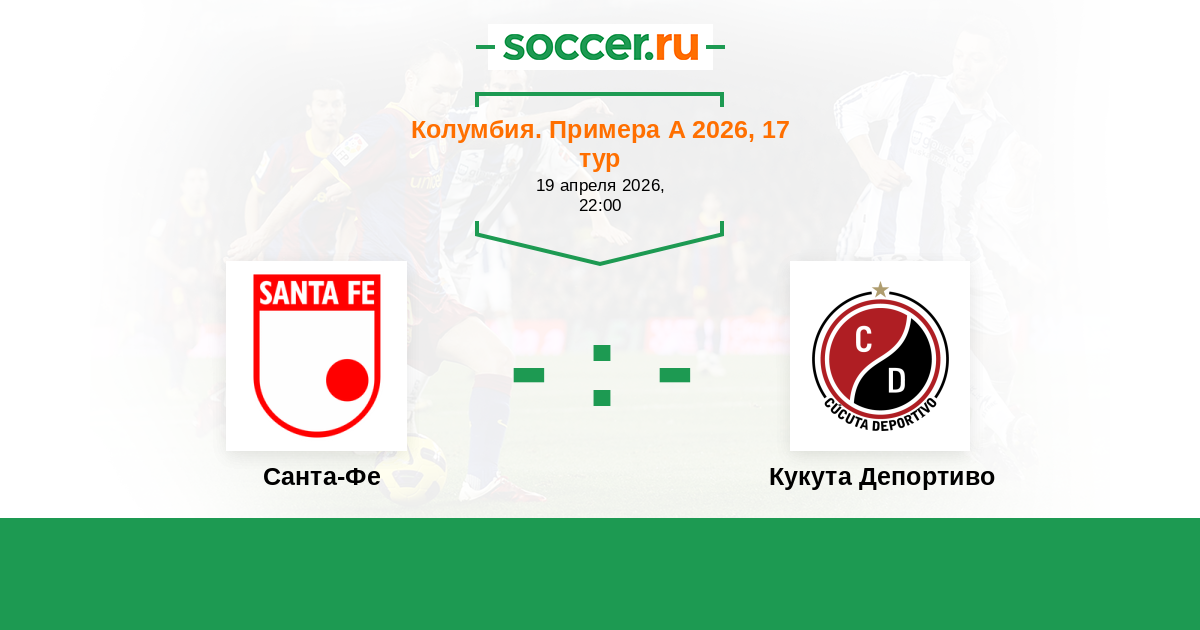 Колумбия. Примера А 03.10.2020 Кукута Депортиво Логотип футбольный клуб Кукута Депортиво 2:3 Логотип футбольный клуб Санта-Фе (Богота) Санта-Фе