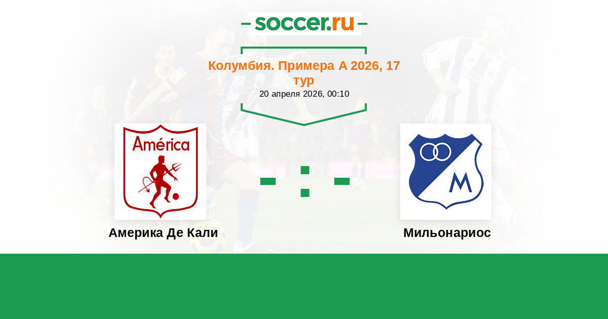 Колумбия. Примера А 17.04.2025 Америка Де Кали Логотип футбольный клуб Америка Де Кали 0:0 Логотип футбольный клуб Мильонариос (Богота) Мильонариос