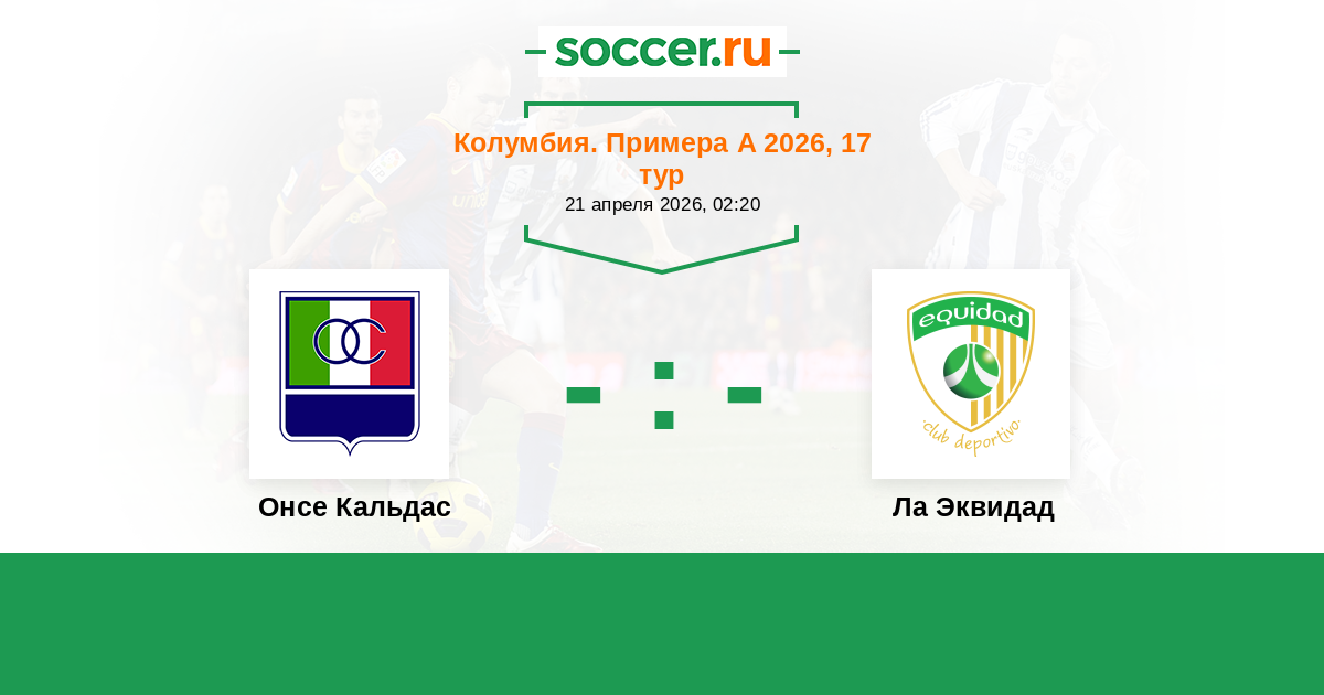 Колумбия. Примера А 17.04.2025 Онсе Кальдас Логотип футбольный клуб Онсе Кальдас (Манисалес) 3:0 Логотип футбольный клуб Ла Эквидад (Богота) Ла Эквидад