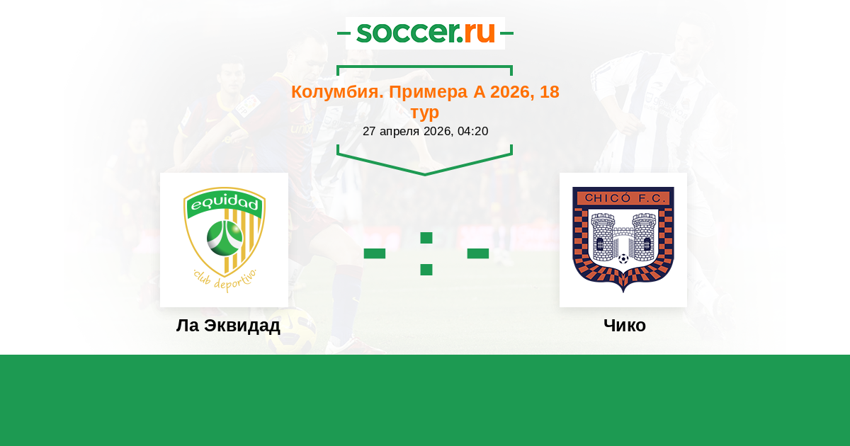 Колумбия. Примера А 24.03.2023 Ла Эквидад Логотип футбольный клуб Ла Эквидад (Богота) 2:2 Логотип футбольный клуб Чико (Тунха) Чико