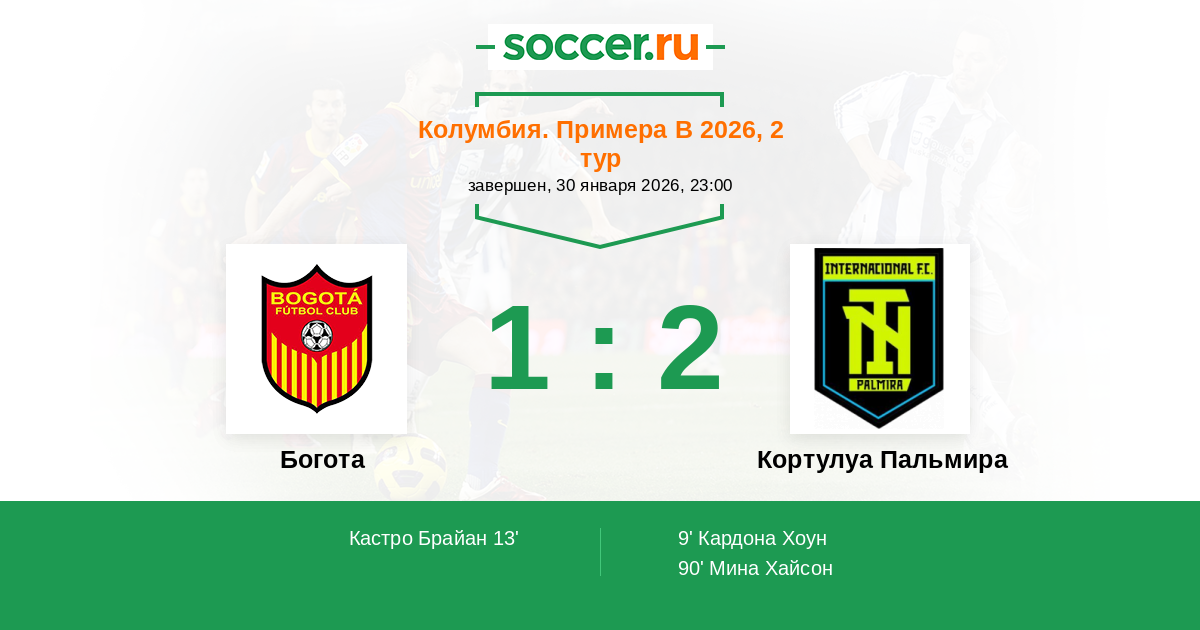 Протокол матча Богота против Кортулуа Пальмира