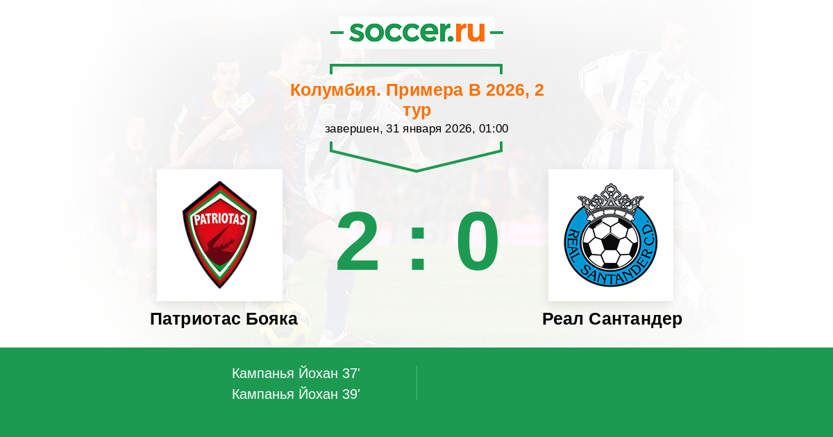 Протокол матча Патриотас Бояка против Реал Сантандер