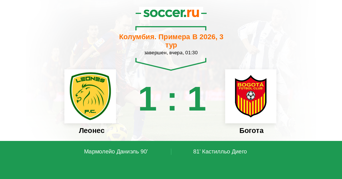 Протокол матча Леонес против Богота