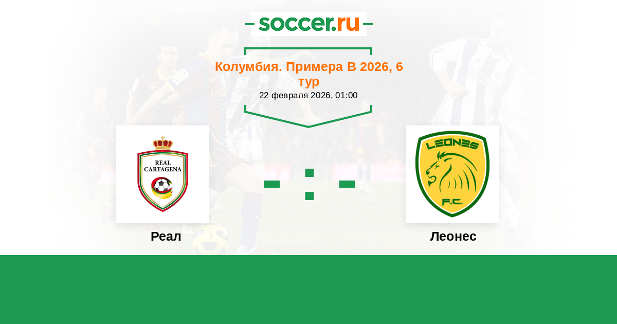 Колумбия. Примера B 10.03.2022 Леонес Логотип футбольный клуб Леонес (Итагуи) 1:0 Логотип футбольный клуб Реал (Картахена) Реал