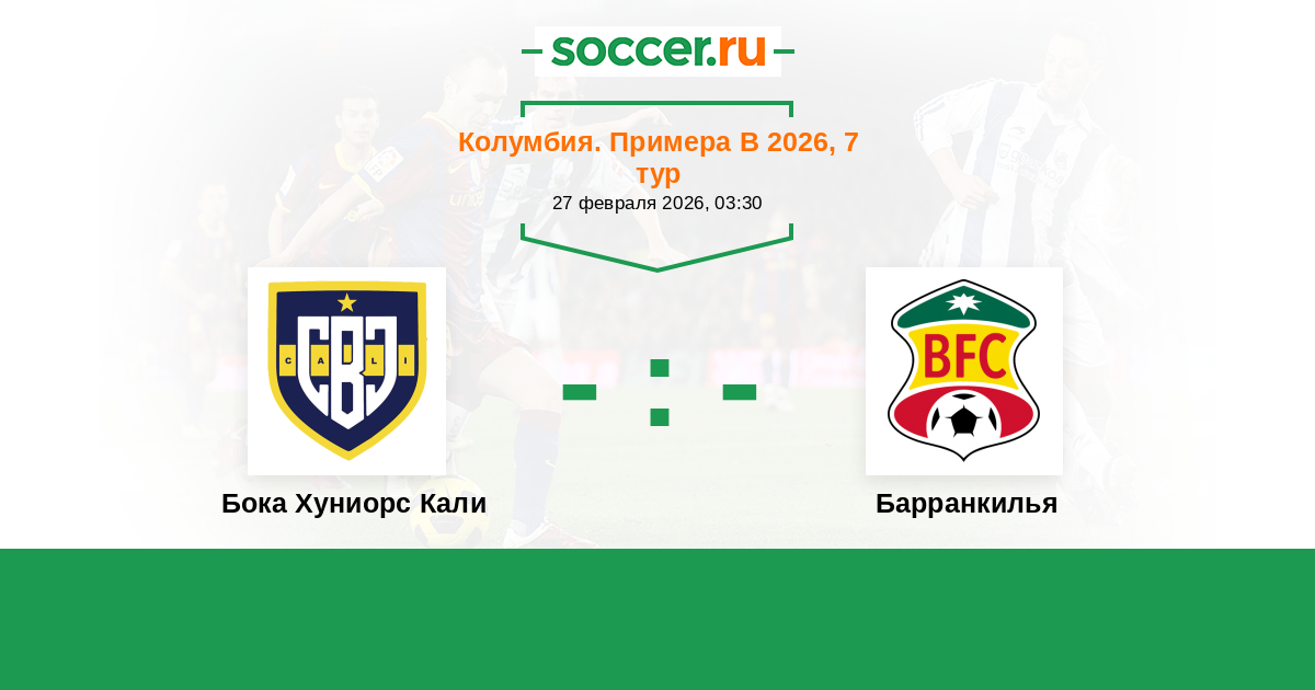 Колумбия. Примера B 27.02.2024 Бока Хуниорс Кали Логотип футбольный клуб Бока Хуниорс Кали (Сантьяго-де-Кали) 1:0 Логотип футбольный клуб Барранкилья Барранкилья