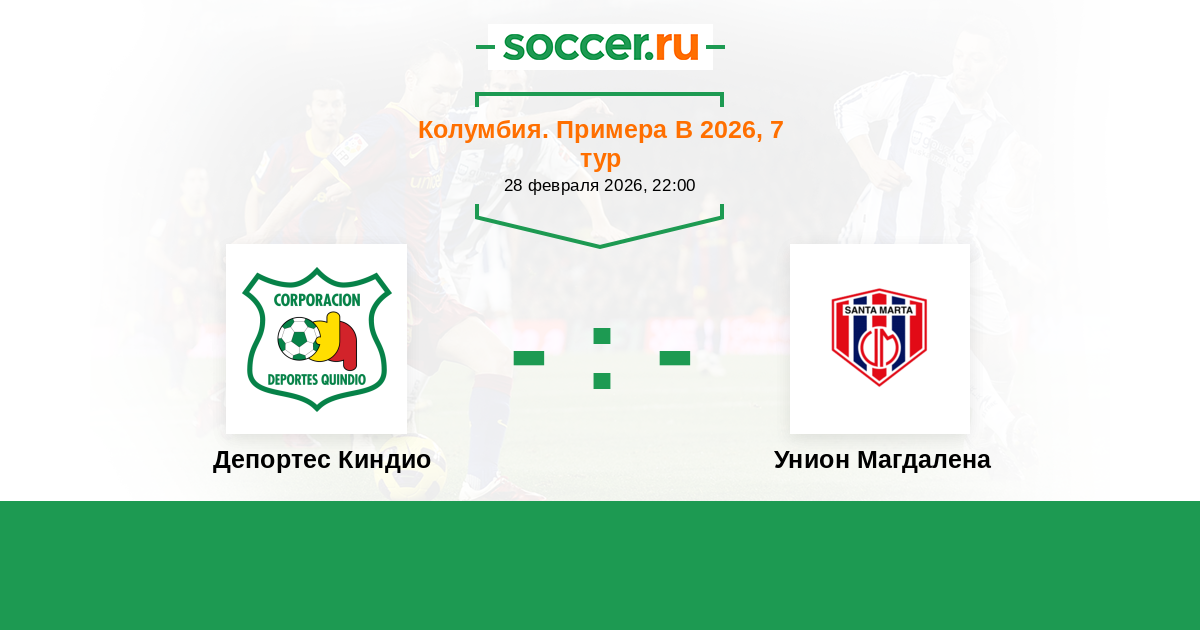Колумбия. Примера B 17.06.2021 Депортес Киндио Логотип футбольный клуб Депортес Киндио (Армения) 2:0 Логотип футбольный клуб Унион Магдалена (Санта Марта) Унион Магдалена