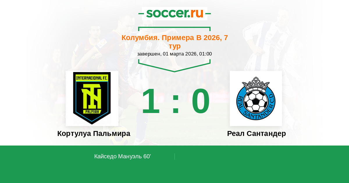 Протокол матча Кортулуа Пальмира против Реал Сантандер