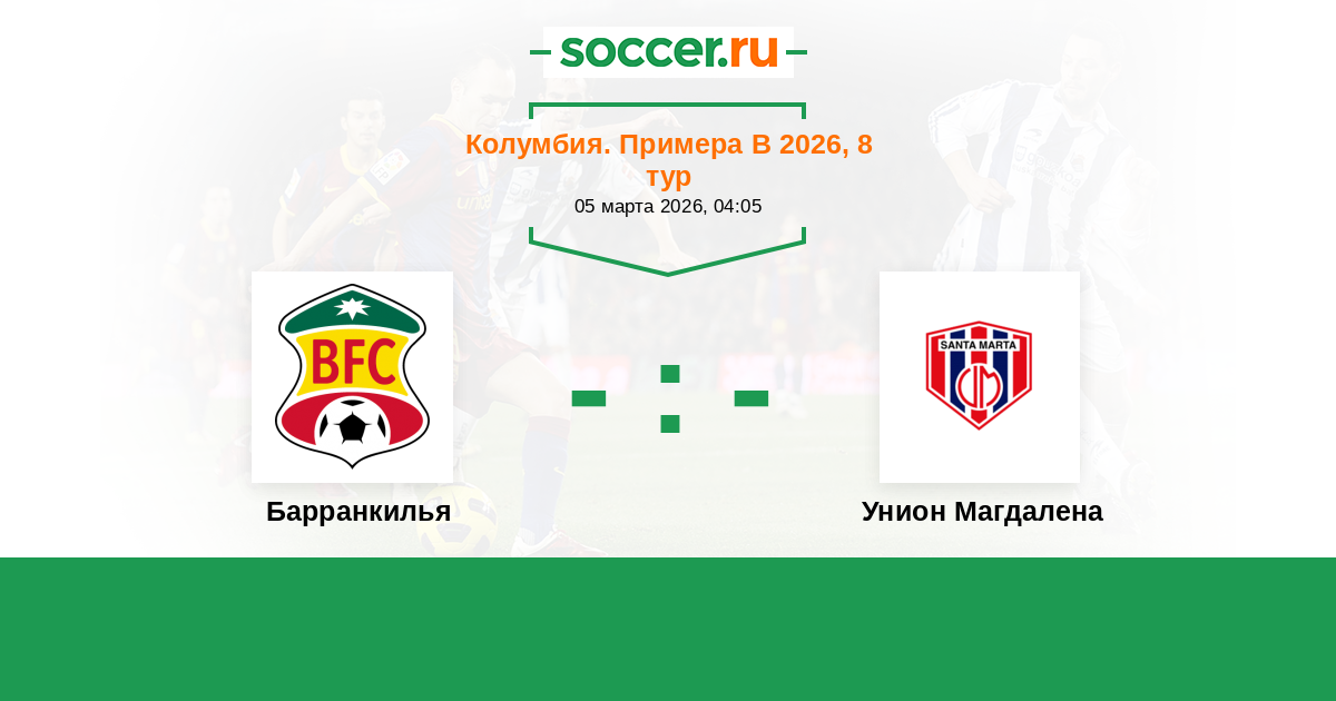 Колумбия. Примера B 24.10.2020 Барранкилья Логотип футбольный клуб Барранкилья 2:5 Логотип футбольный клуб Унион Магдалена (Санта Марта) Унион Магдалена