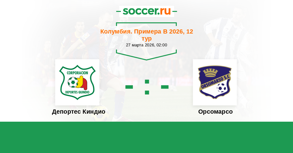 Колумбия. Примера B 07.09.2023 Орсомарсо Логотип футбольный клуб Орсомарсо 0:0 Логотип футбольный клуб Депортес Киндио (Армения) Депортес Киндио