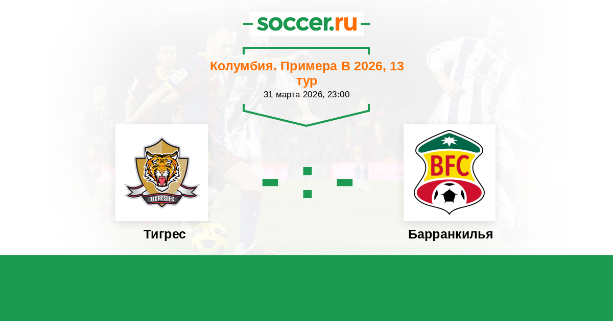 Колумбия. Примера B 13.02.2023 Тигрес Логотип футбольный клуб Тигрес (Сипакира) 1:0 Логотип футбольный клуб Барранкилья Барранкилья