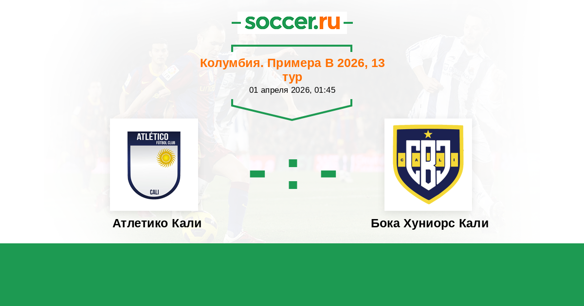 Колумбия. Примера B 28.03.2023 Бока Хуниорс Кали Логотип футбольный клуб Бока Хуниорс Кали (Сантьяго-де-Кали) 2:2 Логотип футбольный клуб Атлетико Кали Атлетико Кали