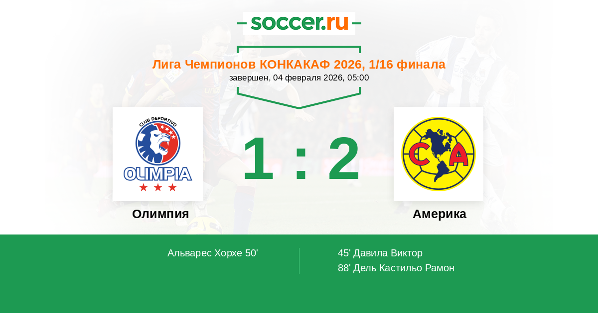 Протокол матча Олимпия против Америка