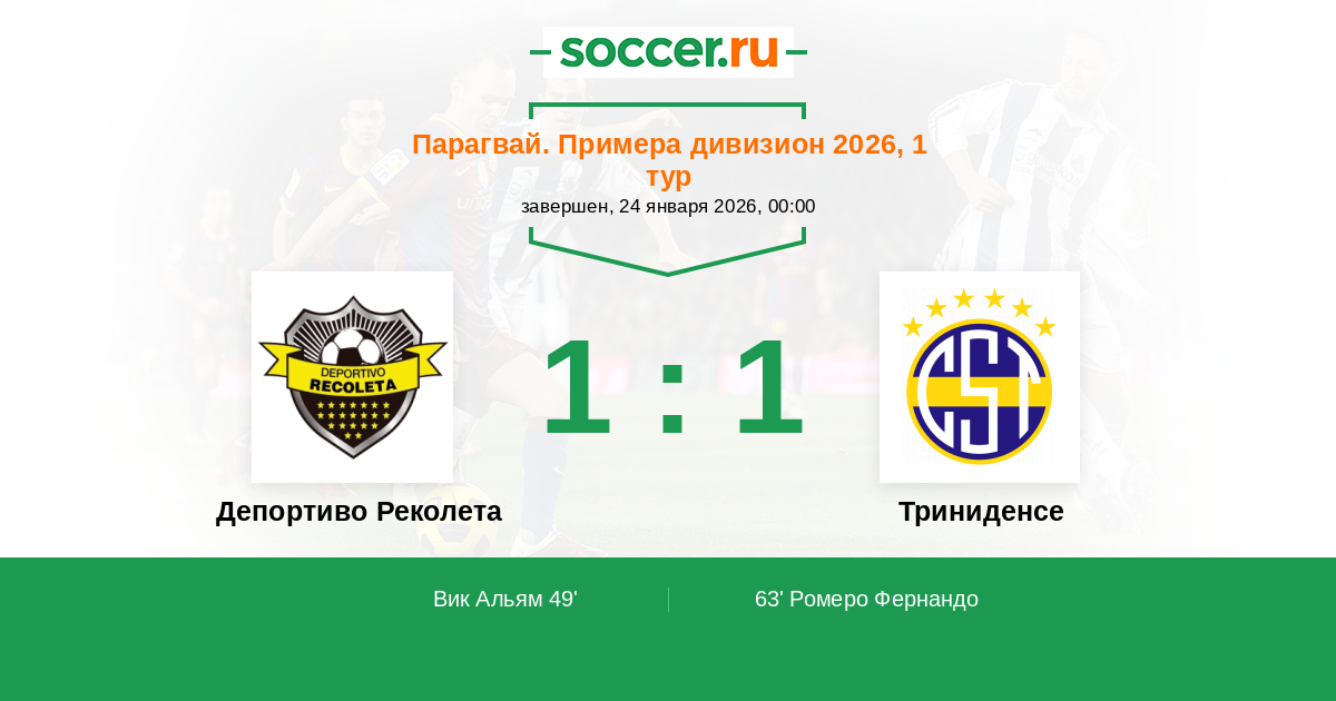 Протокол матча Депортиво Реколета против Триниденсе